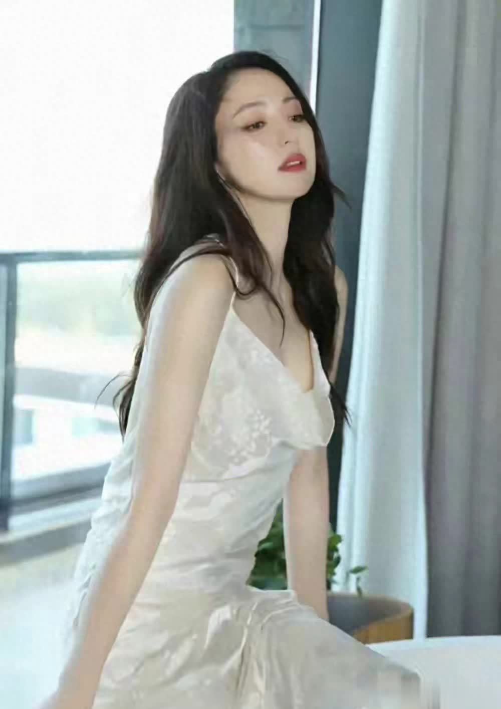再看她穿的这袭露背绸缎裙,真的绝到我失语!绸缎面料自带高级柔光,灯光下一照顺滑又显贵,修身剪裁把身材曲线掐得刚刚好,不松不紧超显气质。最绝的还是露背设计,不是俗气的大露特露,而是恰到好处的弧度,衬得她肩颈线条又直又细,香肩精致、美背白皙光滑,线条流畅得像画出来的,转身那一下直接撩到人心巴上!